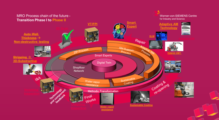 The funding project MRO 2.0 - Maintenance, Repair and Overhaul with the repair chain "Upgrade instead of classic repair" is being carried out within the framework of the Werner von Siemens Centre for Industry and Science.